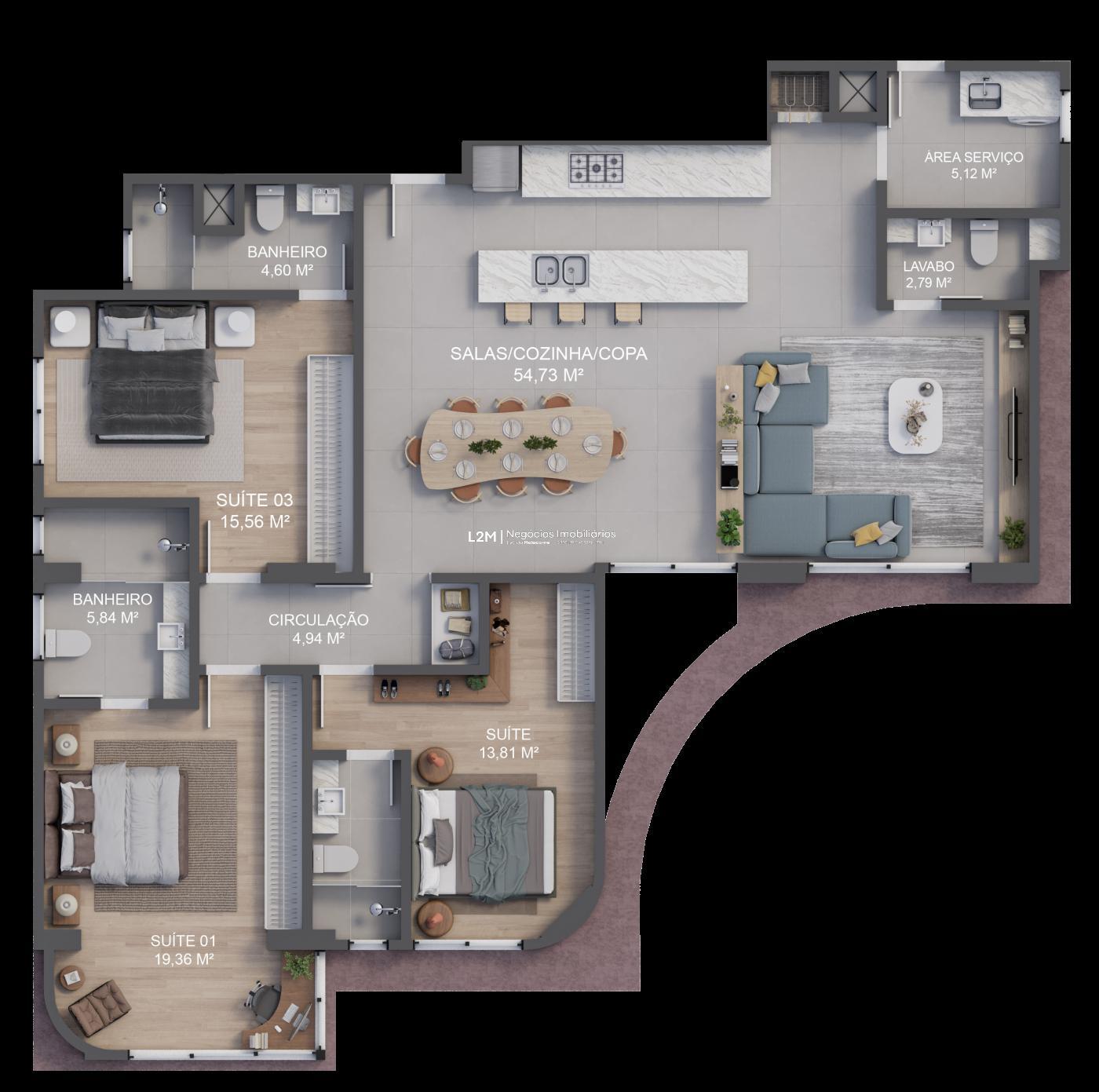 - 3 suítes que garantem conforto e privacidade para toda a família