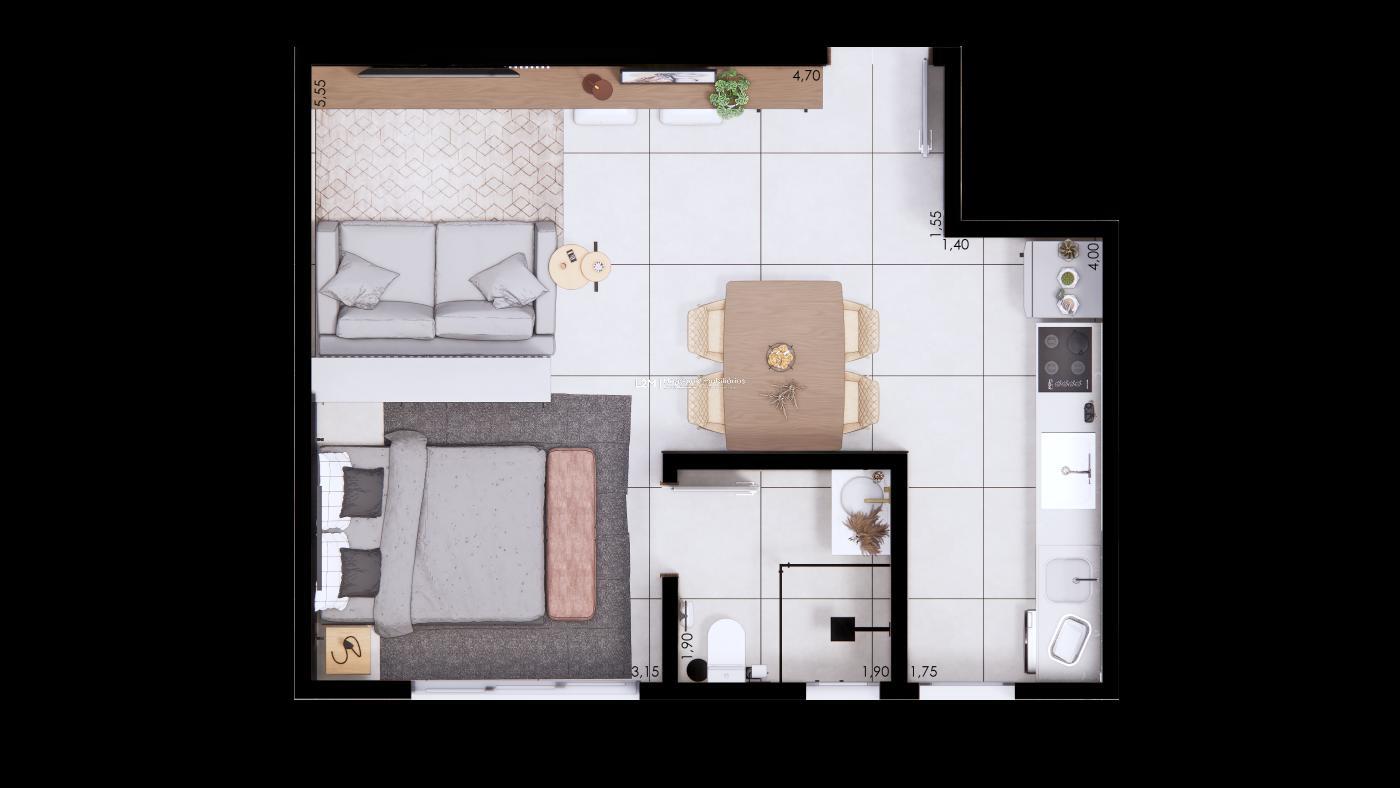 Esse studio de 40,32m² foi projetado para quem busca praticidade, modernidade e uma localização estratégica. Ideal para estudantes, jovens profissionais e investidores que desejam unir conforto e valorização.