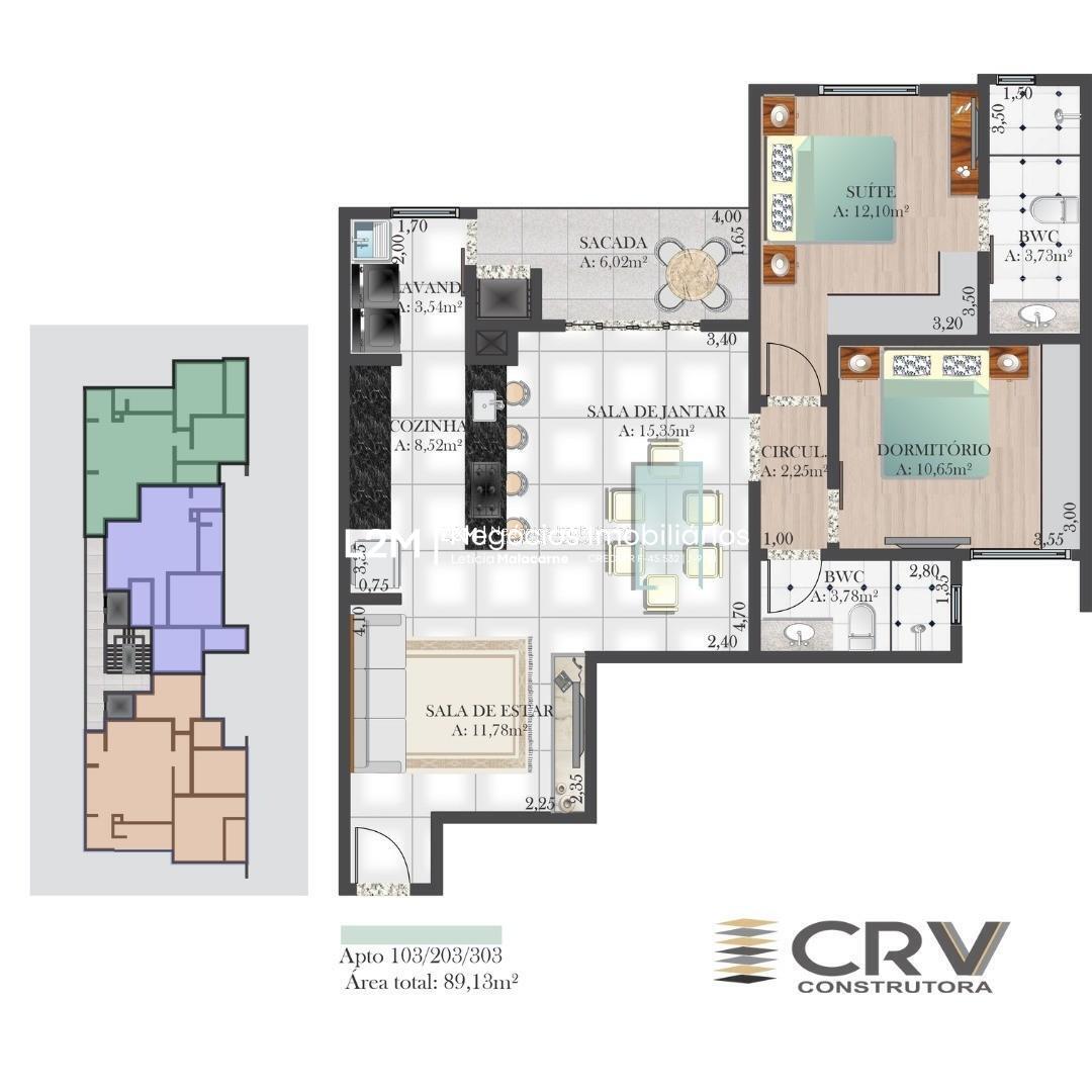 De fundos, este apartamento de 89,13m² garante a tranquilidade do dia a dia, longe do movimento da rua, mas sem abrir mão da proximidade com tudo o que você precisa.